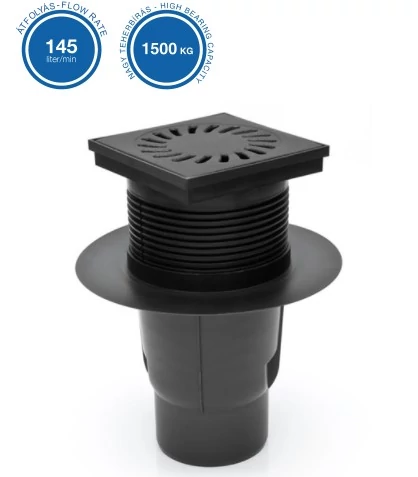 Kültéri víznyelő, eresz bekötéssel, ráccsal, oldalsó kifolyás (KV-110-B)