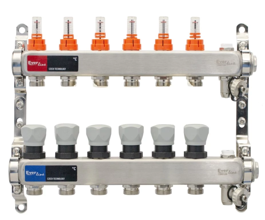 Padlófűtés áramlásmérős osztó-gyűjtő 3-4-5-6-7-8-9-10-11-12 körös, osztóvéggel automata légtelenítővel (EVP-DSF3411)